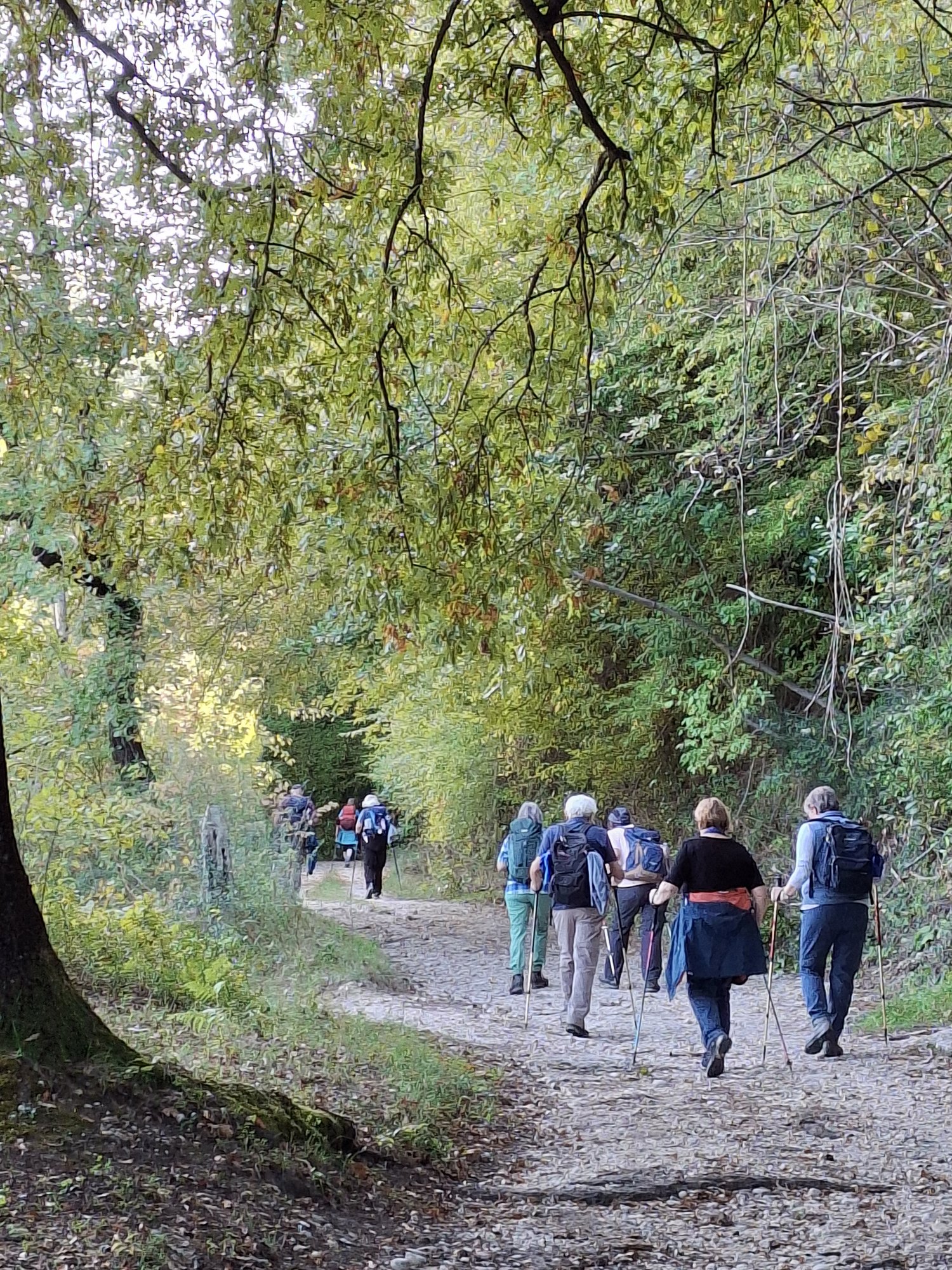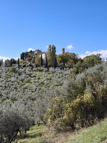 Geschafft - der zweite Pilgerwandertag. Unterwegs waren wir auf vielen Teer- und Betonwegen, das geht in die Knie, zumal es steil hoch zur Kirche in Toffia ging, dann wieder tief hinab ins Tal und wieder hinauf zur Abazia di Farfa. Da passte: "Lass mich langsamer gehen, Gott, entlaste das eilige Schlagen meines Herzens durch das Stillwerden meiner Seele." Fällt manchem gar nicht so leicht, das langsam gehen und stille sein. Dafür entdeckt man aber manchen blühenden Schatz am Wege. Höhepunkte des Tages: Picknick auf der Treppe vor der Kirche in Toffia und die Führung durch die Abtei von Farfa, wo auch der wohlverdiente Espresso und Cappuccino ausgezeichnet geschmeckt haben. Grazie!