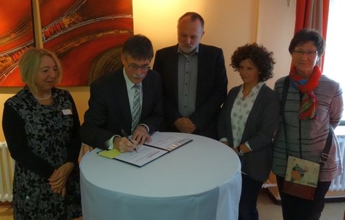 „Wir wollen heute die sehr gute Zusammenarbeit schriftlich besiegeln, die bereits seit 2005 existiert“, sagte auch Leiterin Annette Schenk vom Caritas-Altenzentrum St. Matthias. Seinerzeit besuchten zwei Mitarbeiterinnen von St. Matthias einen Basiskurs des Hospizdienstes. Damit war die Idee der intensiven Betreuung von Bewohnern vor und in der Sterbephase in St. Matthias geboren. Seitdem werden Bewohner auf Wunsch von den ehrenamtlichen Mitarbeitern des ambulanten Hospizdienstes betreut und begleitet. Die Leiterin ist insbesondere stolz darauf, dass St. Matthias eine der ersten Einrichtungen des Caritasverbandes Speyer ist, in der der Palliativgedanke praktiziert und gelebt wird.