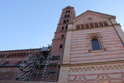 Speyer. Das nächste große Bauprojekt am Speyerer Dom wurde begonnen. Vor drei Jahren war sein „Zwilling“ im Süden dran, jetzt werden am Nordwestturm Gerüste aufgebaut. Obwohl der Turm im Vergleich zu anderen Teilen des Doms mit seinen 160 Jahren ein Jungspund ist, steht nun eine komplette Innen- und Außensanierung an. 10 bis 15 Arbeiter werden in den kommenden Tagen, Wochen und Monaten durchgängig verschiedene Maßnahmen an dem 65 Meter hohen Flankenturm durchführen. Sofern alles nach Plan verläuft, werden die Gerüste dann vor dem nächsten Weihnachtsfest wieder abgebaut sein. Rund ein Jahr wird die Überprüfung, Sanierung und Reinigung der Innen- und Außenflächen dauern.