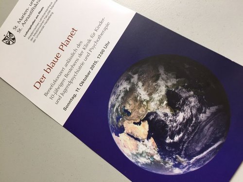 Ludwigshafen. Am Sonntag, den 11. Oktober 2015, 17 Uhr, findet in der Ludwigshafener Friedenskirche (Leuschnerstraße 56) ein großes Benefizkonzert zu Gunsten der Klinik für Kinder- und Jugendpsychiatrie und Psychotherapie am St. Annastiftskrankenhaus statt. Anlass ist das 10-jährige Jubiläum der Klinik. 150 Kinder und Jugendliche zwischen sechs und 16 Jahren aus sechs Kinderchören der Region des Chorverbandes Pueri Cantores führen gemeinsam mit der Blue Planet Band unter der musikalischen Leitung von Dekanatskantor Georg Treuheit die szenische Musical-Kantate „Der blaue Planet“ auf.