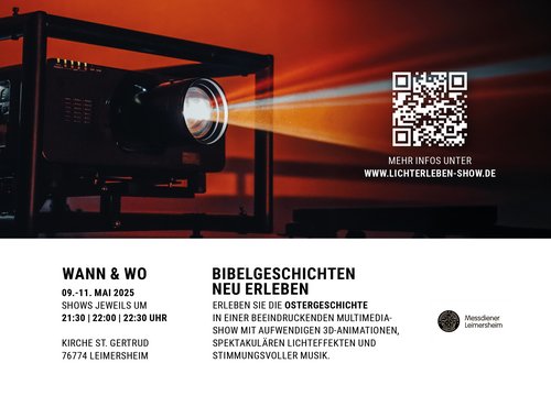 Leimersheim. Nach den erfolgreichen Vorstellungen der vergangenen Jahre kehrt das Multimedia-Event LICHTERLEBEN wieder in die Leimersheimer Kirche St. Gertrud zurück. In der dritten Auflage des faszinierenden Lichtspektakels widmen sich die Messdiener dieses Jahr den zentralen Ereignissen des Osterfestkreises: Ostern, Himmelfahrt und Pfingsten.