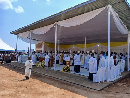 Der Weihbischof erzählt: „Die Eucharistiefeier hat fast 5 Stunden gedauert. Sie fand auf einem terrassenförmigen Gelände im Freien statt. Man schätzt die Zahl der Gottesdienstbesucher auf über 20.000. Ein Element, das mit großem Beifall bedacht wurde, war die szenische Darstellung der Ankunft der ersten Missionare bzw. des Evangeliums durch Jugendliche. In einem Boot sah man vom Kivu-See her kommend die Ankunft eines Missionars, der die Hl. Schrift in den Händen hält und sie hocherhoben den Menschen zeigt. Seit 125 Jahren hat das Wort Gottes einen Platz bei den Gläubigen gefunden.“ Mittlerweile gibt es in Ruanda neun Diözesen mit zahlreichen Pfarreien, geistlichen Zentren und kirchlichen Basisgemeinden.