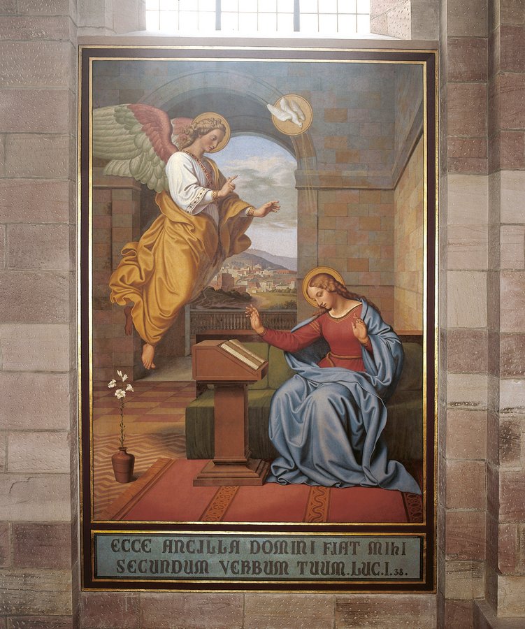 Die Verkündigung Mariens, Fresko von Johann Baptist Schraudolph im Mittelschiff des Speyerer Doms © Domkapitel Speyer, Foto: Renate Deckers-Matzko