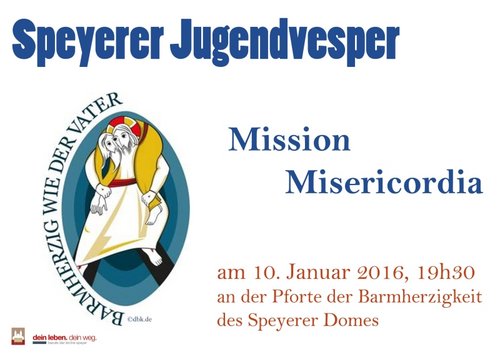 Papst Franziskus hat am 8. Dezember 2015 ein außerordentliches Heiliges Jahr, das „Jubiläum der Barmherzigkeit“ der katholischen Kirche ausgerufen. „Barmherzigkeit“ macht ernst mit der biblischen Zusage, dass jeder Mensch ein Abbild, ein Ebenbild Gottes ist. Unabhängig von Alter, Geschlecht, Herkunft, Vermögen und Fähigkeiten. Wer durch eine „Pforte der Barmherzigkeit“ geht, soll erfahren: Hier werde ich angenommen und wertgeschätzt – als Mensch, einfach so wie ich bin. Wie das gelingen kann - darum geht es in der Speyerer Jugendvesper. Treffpunkt ist um 19.30 Uhr an der „Pforte der Barmherzigkeit“ des Speyerer Doms.