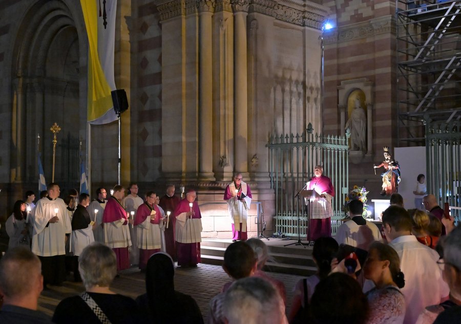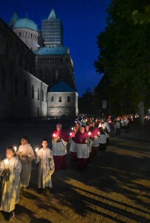 Speyer. Mit einer stimmungsvollen Andacht und einer anschließenden Lichterprozession endeten die Feierlichkeiten rund um Mariä Himmelfahrt, dem Patronatsfest von Dom und Bistum. Gestaltet wurde diese von der Dompfarrei Pax Christi, deren leitender Pfarrer Matthias Bender der Feier vorstand. Die Predigt hielt Domkapitular Georg Müller.