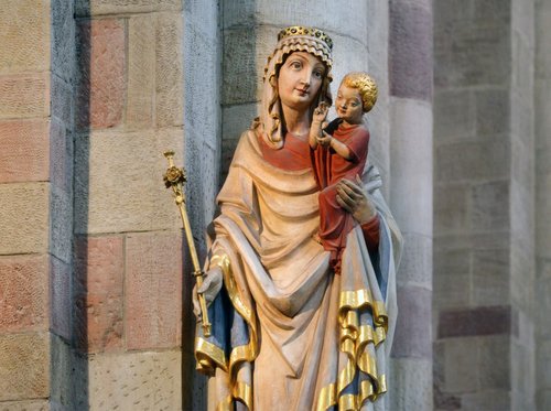 Das Fest der Aufnahme Mariens in den Himmel wird von der katholischen und der orthodoxen Kirche als Hauptfest unter den Marientagen gefeiert. Erstmals ist es in der armenischen Kirche für die Mitte des fünften Jahrhunderts bezeugt. Auch im Bistum Speyer hat die Verehrung der in den Himmel aufgenommenen Gottesmutter eine alte Tradition. Im Jahr 670 wird in einer Schenkungsurkunde des Merowingerkönigs Hilderich II. zum ersten Mal Maria als Patronin der Diözese genannt. Ebenso hatte schon die Vorgängerkirche des jetzigen salischen Domes das Marienpatrozinium. Seit dem Mittelalter machte das Gnadenbild der "Patrona Spirensis" den Dom zu einem Mittelpunkt der Marienverehrung für das ganze Bistum Speyer.