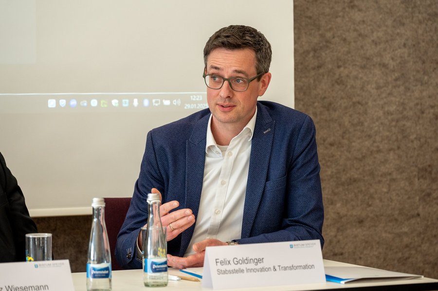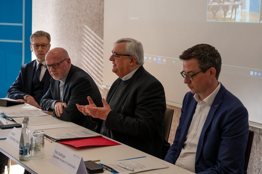 v.l.n.r.: Diözesanökonom Peter Schappert, Generalvikar Markus Magin, Bischof Dr. Karl-Heinz Wiesemann, Felix Goldinger (Stabsstelle Innovation & Transformation) © Bistum Speyer