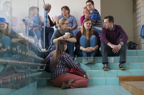 "Spring!"- im Becken eines ehemaligen Freibades diskutierten "Kirchenentdecker" neue Ideen von Kirche.