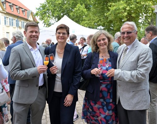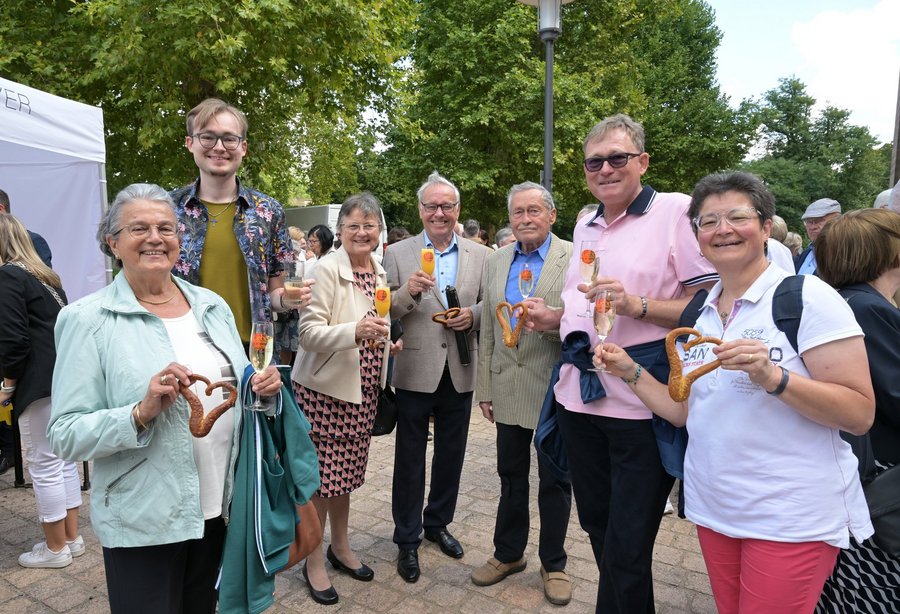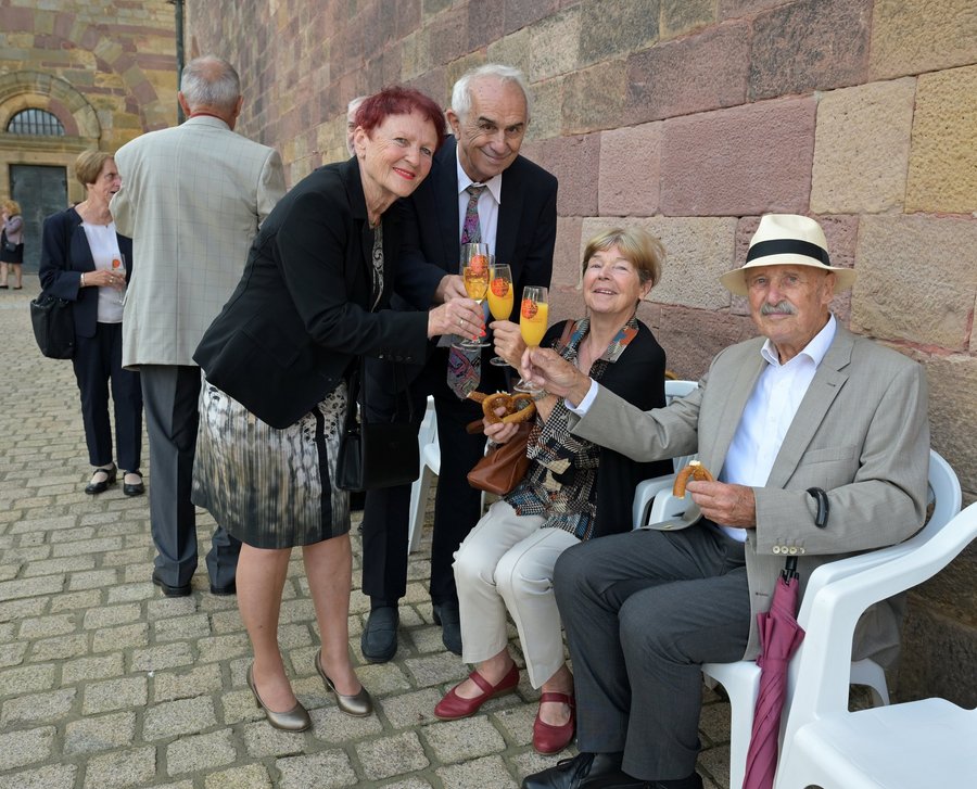 Im Anschluss an die Einzelsegnungen wurden alle Ehepaare zu einer Begegnung in den Domgarten eingeladen und beendeten den Festtag mit einem Tanz rund um den Domnapf. Dazu erklang Livemusik von Walter Ast (Speyer) am E-Piano und Lothar Sprengart (Dudenhofen) an der Trompete.