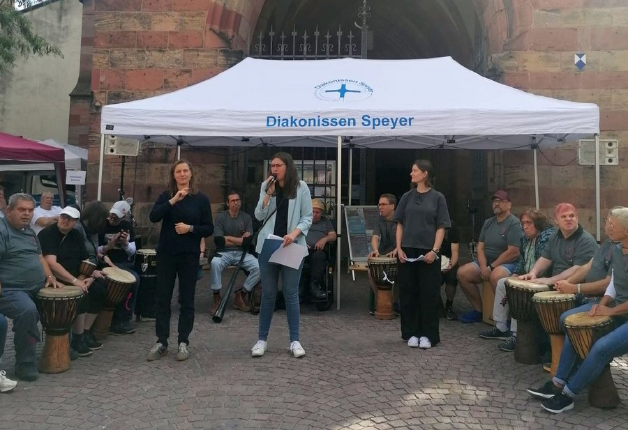 Landau. Unter dem Motto "Landau inklusiv – Dein Erlebnistag“ fand am Samstag, den 23. August, ein Erlebnistag in Landau mit einer bunten Vielfalt von Angeboten statt. Mit der Trommelgruppe des Caritas-Förderzentrums St. Laurentius und Paulus und der offiziellen Eröffnung durch Anna-Lena Abend, Referentin für Seelsorge für Menschen mit Behinderung im Bischöflichen Ordinariat Speyer, und dem Grußwort der Schirmherrin, Frau Lena Dürphold, Beigeordnete der Stadt Landau, startete die Veranstaltung vor der protestantischen Stiftskirche. In ihrem Grußwort bedankte sich Frau Dürphold beim Bistum Speyer für die Organisation dieser besonderen Veranstaltung und bei den vielen verschiedenen Einrichtungen und Initiativen, in denen Menschen mit und ohne Behinderung die Veranstaltung gemeinsam organisiert haben. „Landau inklusiv - das ist uns hier in Landau wichtig!“, so Frau Dürphold. „Wir möchten, dass Inklusion bei uns in allen Lebensbereichen existiert.“ Ihr als Sozialdezernentin und Beiratsvorsitzende für den Beirat von Menschen mit Behinderung der Stadt Landau sei es ein Anliegen, dass alle Menschen mit und ohne Behinderungen in allen Bereichen der Gesellschaft teilhaben können. „Inklusion funktioniert, wenn wir Menschen gegenseitig aufeinander achten, wenn wir den anderen so annehmen wie er ist, wenn wir gesellschaftliche Hürden abbauen“, betont Frau Dürphold.