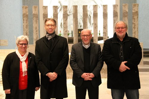 Nach einem kleinen Stehempfang versammelte sich die kleine Feiergemeinde zu einem stimmungsvollen Dankgottesdienst in der Seminarkirche. Weihbischof Georgens predigte über das Thema „Dankbarkeit“ in all seinen Facetten: Etwa, dass „Dank“ denselben Wortstamm wie „Denken“ hat – wir also einer Sache gedenken, oder auch, dass wir viele kleine oder große Dinge im Alltag als selbstverständlich hinnehmen und nie dafür danken. Besonders zum Nach- und Mitdenken regte Weihbischof Georgens durch ein Zitat des schottischen Pfarrers George Herbert Morrison an: „Nicht die Glücklichen sind dankbar, es sind die Dankbaren, die glücklich sind“. Und natürlich lenkte er den Blick auf die vielen Ereignisse in unserem Leben, die Gott gelenkt hat und für die wir dankbar sein dürfen.