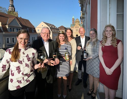Speyer. Frühlingsfrisch sieht er aus, der neue Domwein, Edition 2022, den der Dombauverein wieder zum Kauf anbietet. Vorgestellt wurden die Weine am 28. April im Historischen Ratssaal der Stadt Speyer von der pfälzischen Weinkönigin Sophia Hanke, die in Begleitung der Weinprinzessinnen Sabina Kobek und Laura Wessa gekommen war. Feingliedrig elegant, mit leicht mineralischen Nuancen und feinschmelzigem Abgang – so wird der 2021er Weißburgunder trocken des Winzervereins Deidesheim charakterisiert. Der 2020er St. Laurent Rotwein trocken, Edesheimer Ordensgut des Weinguts Werner Anselmann aus Edesheim, besitzt eine ausgewogene Balance, ist fruchtbetont mit samtig weichen Tanninen und komplexem Charakter. Beide Weine kosten jeweils 7,50 Euro und sind bei der Dom-Info, der Geschäftsstelle des Dombauvereins sowie in einer Reihe von Geschäften, natürlich auch bei den Weingütern selbst, erhältlich. Angeboten werden beide Weine auch in einer schönen Geschenkverpackung für zusammen 17,90 Euro. Diese kann auch zuzüglich der Versandkosten direkt bei den beiden Weingütern bestellt werden.