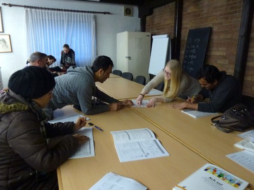 Organisiert und durchgeführt werden die Kurse ausschließlich von Ehrenamtlichen. Im Queidersbacher Pfarrheim schlüpfen drei Schülerinnen jede Woche für ein paar Stunden in die Rolle der Lehrerin. „Für einen allein wäre das Unterrichten schwierig. Denn das Sprachniveau der Flüchtlinge ist sehr unterschiedlich“, erklärt Johanna Stark. Zudem könnten einige der Teilnehmer nicht lesen und schreiben. „Deshalb teilen wir uns auf und kümmern uns um die einzelnen Gruppen“, betont die Mitarbeiterin.