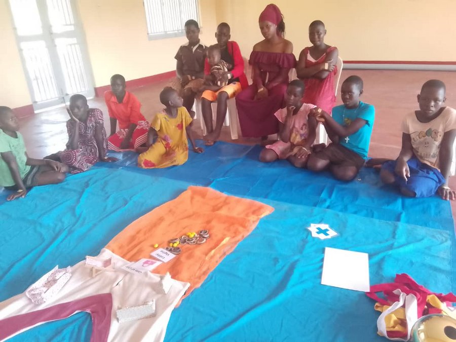 Die Zyklusshow kommt in Uganda sehr, sehr gut an! Die Workshops fanden anfangs oft im sopadad Centre in Katikamu selbst statt (Mädchen wurden dorthin eingeladen), aber zunehmend inzwischen auch in Schulen der Umgebung (Luweero District, ca 50km nördlich von Kampala). Ein paar Mal haben die Referentinnen tatsächlich 2 Workshops direkt am Stück gemacht, morgens um acht 25 Mädchen und nachmittags um 14 Uhr nochmal 25 in einer Schule... Außerdem haben die Referentinnen festgestellt, dass es gut ist, ab und zu einen Workshop für die Mütter der Mädchen zu halten, damit diese wissen, was ihre Mädchen lernen, denn das ist gerade bei den bildungsferneren Schichten sehr wichtig. Sie stießen bei den allermeisten Frauen auf viel Offenheit, Interesse und Wertschätzung - und jetzt kommen auch zunehmend Anfragen von Schulen.