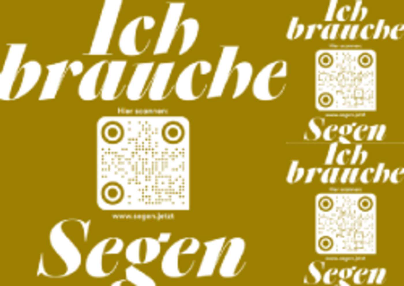 Ein Sticker (Aufkleber) mit einem QR-Code führt auf die Internetseite www.segen.jetzt - Dort ist ab 12. Mai ein Segenszuspruch les- und hörbar (siehe Beispielgrafik rechts). Die Segensworte wechseln zufällig immer dann, wenn die Internetseite neu geladen wird. Bisher gibt es 10 verschiedene Segensworte, z.B. "Jesus verspricht: Ich bin immer bei euch, jeden Tag, bis zum Ende der Welt. (Matthäus 28,20)" oder "Sei von guten Mächten wunderbar geborgen." Neben dem Segen sollen keine weiteren Informationen erscheinen. Nur im Impressum werden Initiatoren und Kooperationspartner genannt, jedoch ohne Werbeabsichten. Es geht um den kraftspendenden Segen Gottes, der ohne irgendwelche Bedingung geschenkt ist.